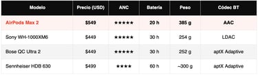 AirPods Max 2 vs Sony WH-1000XM6 y Bose: comparativa completa 2026.