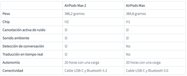 Chip H2 en AirPods Max 2: ANC mejorado y Adaptive Audio.